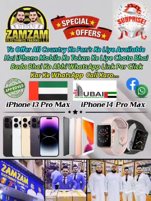 At Zamzam Mobiles Gift, we believe in delivering more than just devices — we deliver trust. We offer only top-brand products at unbeatable prices, backed by thousands of happy customers who’ve benefited from our transparent gift programs. Our dedicated support team is always ready to help through verified WhatsApp channels, ensuring a safe and smooth experience. Proudly operating from our official Bur Dubai branch, we’re committed to being your most reliable tech and gifting partner.